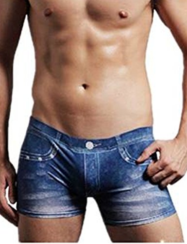 -. Feature : 100% Brand Neu und Hohe Qualität! / Material: Gemischte Baumwolle und Seide / Farbe: Bunt Denim / Größe:M,L,XL,XXL / 1 x Sexy Herren Hauteng Denim Seide Slip Unterhose