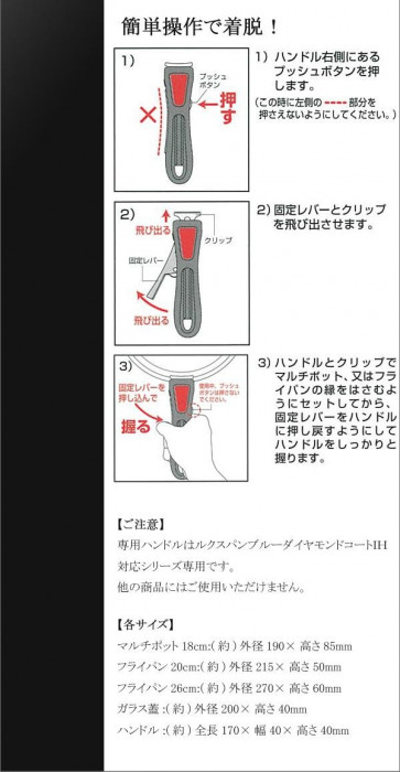 | セット内容 | マルチポット18cm、フライパン20cm、フライパン26cm、ガラス蓋、ハンドル |