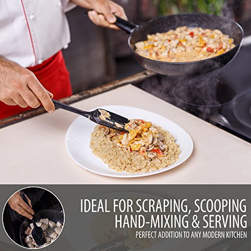 - Set of 2 ergonomic design pro-grade silicone turner spatulas: Useful task-oriented shapes make cooking easy and glide smoothly beneath foods. Seamless one-piece design is not only dishwasher safe and easy to sanitize, but also best for scraping, stirring, scooping, tasting and reaching into thin jars.