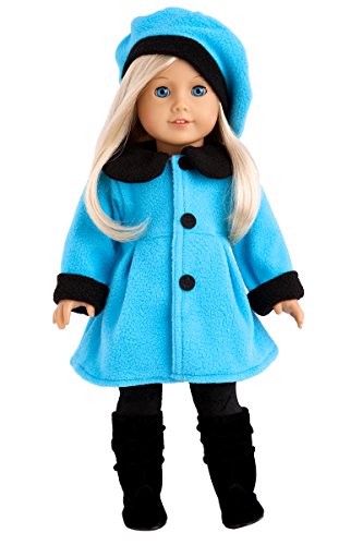 -. Binding : Toy -. Brand : DreamWorld Collections -. EAN : 0610256794594 -. Feature : Your doll can always look elegant in this turquoise blue coat with fancy beret, black leggings and suede high boots. / 18 inch doll clothes fits American Girl dolls. / Designed in the USA and sold Exclusively by DreamWorld Collections. / DOLL NOT INCLUDED -. IsAdultProduct : 0 -. Label : DreamWorld Collections -. Manufacturer : DreamWorld Collections -. Model : DWC-1525 -. MPN : DWC-1525 -. PackageQuantity : 1 -. PartNumber : DWC-1525 -. ProductGroup : Toy -. ProductTypeName : TOYS_AND_GAMES -. Publisher : DreamWorld Collections -. Studio : DreamWorld Collections -. Title : Parisian Stroll - 4 piece outfit - Blue fleece coat with matching beret, black leggings and boots - 18 Inch American Girl Doll Clothes (doll not included) -. UPC : 610256794594