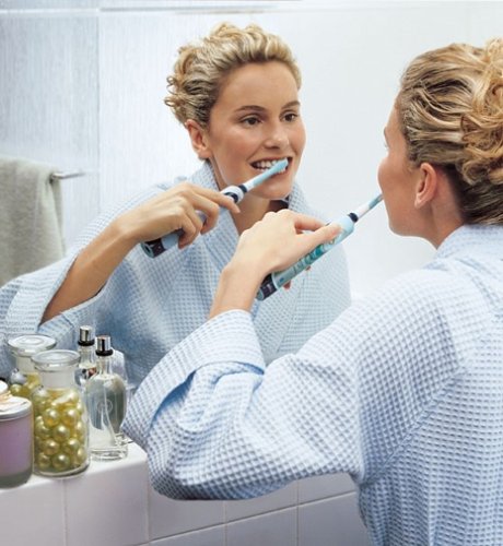 "Brown Oral B Sonic Complete S185252" is an electric toothbrush that gently polishes teeth and gums by micro sonic vibration.