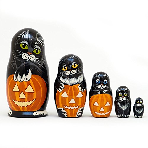 -. Title : Nesting doll Cats halloween pumpki - Completely handmade matryoshka 7" / 18cm