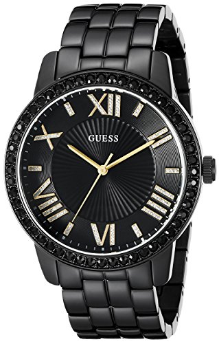 -. Binding : Watch -. Brand : GUESS -. Color : BLACK/GOLD -. Department : womens -. EAN : 0091661454899 -. Feature : Gorgeous luxe oversized black and gold-tone watch adds extra glamour and style to your day and night looks and that's perfect for him or her / Durable mineral crystal protects watch from scratches / Quartz Movement / Case Diameter: 42.0mm / Water Resistant To 99 Feet -. Label : Sequel International -. Manufacturer : Sequel International -. Model : U0329L5 -. MPN : U0329L5 -. PartNumber : U0329L5 -. ProductGroup : Watch -. ProductTypeName : WATCH -. Publisher : Sequel International -. Studio : Sequel International -. Title : GUESS Women's U0329L5 Classic Black & Gold-Tone Watch with Roman Numerals -. UPC : 091661454899