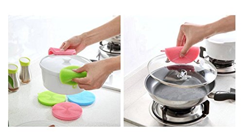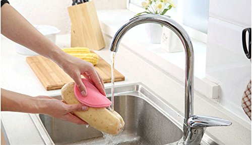 -. Feature : *Made from SILICONE with NO smelly odor, Germ-FREE scrubber! / *EASY to clean and sanitize. *Dishwasher safe, flexible, colorful and fun. / *SAFE to use on non-stick cookware, delicate glassware, surfaces fruits and vegetables. / *LASTS LONGER and DRIES FASTER than typical sponge. / *Can be used as a face wash sponge or shower sponge.