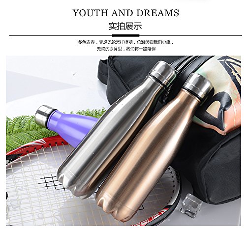 Features: Height(with cap): 26.7cm/10.5" Diameter(mouth): 1.5" Product Capacity: 500ml/17 ounces Product Weight: appr.300g Specifications: Good-bye room temperature drinks, introducing the Bayzon 17oz vacuum insulated bottle! Vacuum Insulation Technology This bottle has a double wall exterior with a vacuum between the walls. This means your drink in the bottle has no medium for the heat or cold to transfer through. The BPA free stainless steel lid is also insulated against heat transfer. Your drink will truly stay as hot or cold as science allows. Even filled with ice or boiling water, the bottle will never sweat or get hot to the touch! Premium 18/8 Stainless Steel Made from food-grade 18/8 stainless steel, this bottle is 100% BPA and Phthalate free, so you can feel comfortable using it time and time again, and sending it to school with your little ones. The stainless steel material repels lingering flavors, so whether you prefer water, milk or juice, your beverage will taste exactly as it should. Don't Sweat It The exterior will never sweat. Forget about about getting water on your important papers, rings on your table, or a watery mess in your bag! Perfect for any Event or Adventure This narrow mouth bottle is perfect at keeping you hydrated at the office, school, shopping, on road trips, hiking, cycling, golfing, exercising and so much more! Becuase the Wave bottle fits in cupholders and is leak proof, it is perfect for Moms and kids on the go. Use as a travel mug, coffee cup, beer canister, tea cup and water bottle. Performs as well as or better than S'well, Nalgene, Hydro Flask, Yeti and Thermos bottles. Notice: 1. Please allow 1-5mm error due to manual measurement. please make sure you do not mind before you bid.Feature