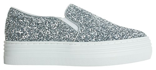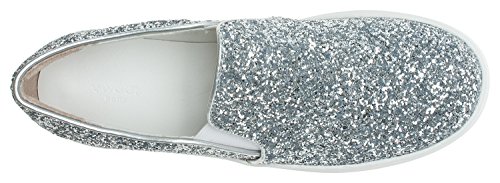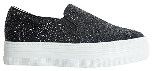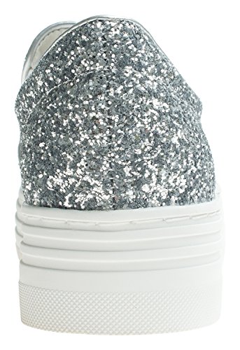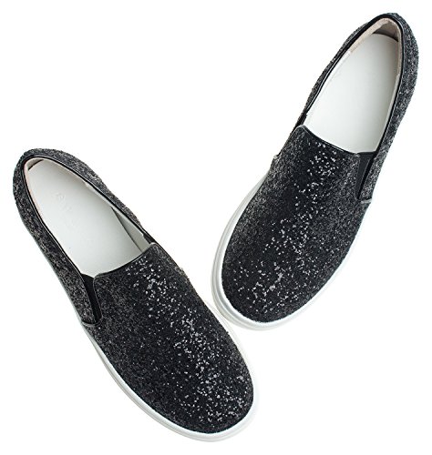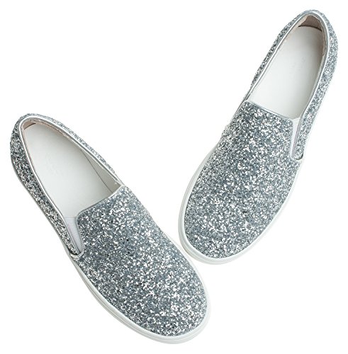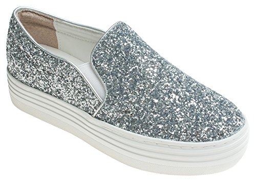 Product Description Glitter fashion slip on shoes by AnnaKastle. This skate sneaker features soft vegan glitter leather upper, round toe and mid platform. Pair it with your favorite pants or skirts for casual and glamourous look. 0