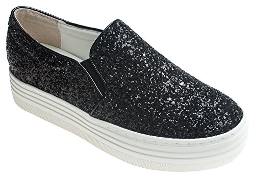 (AnnaKastle)/Women's/Loafers Slip-Ons/DIRECT FROM USA/AnnaKastle Womens Glitter Slip Ons Platform Fashion Sneaker