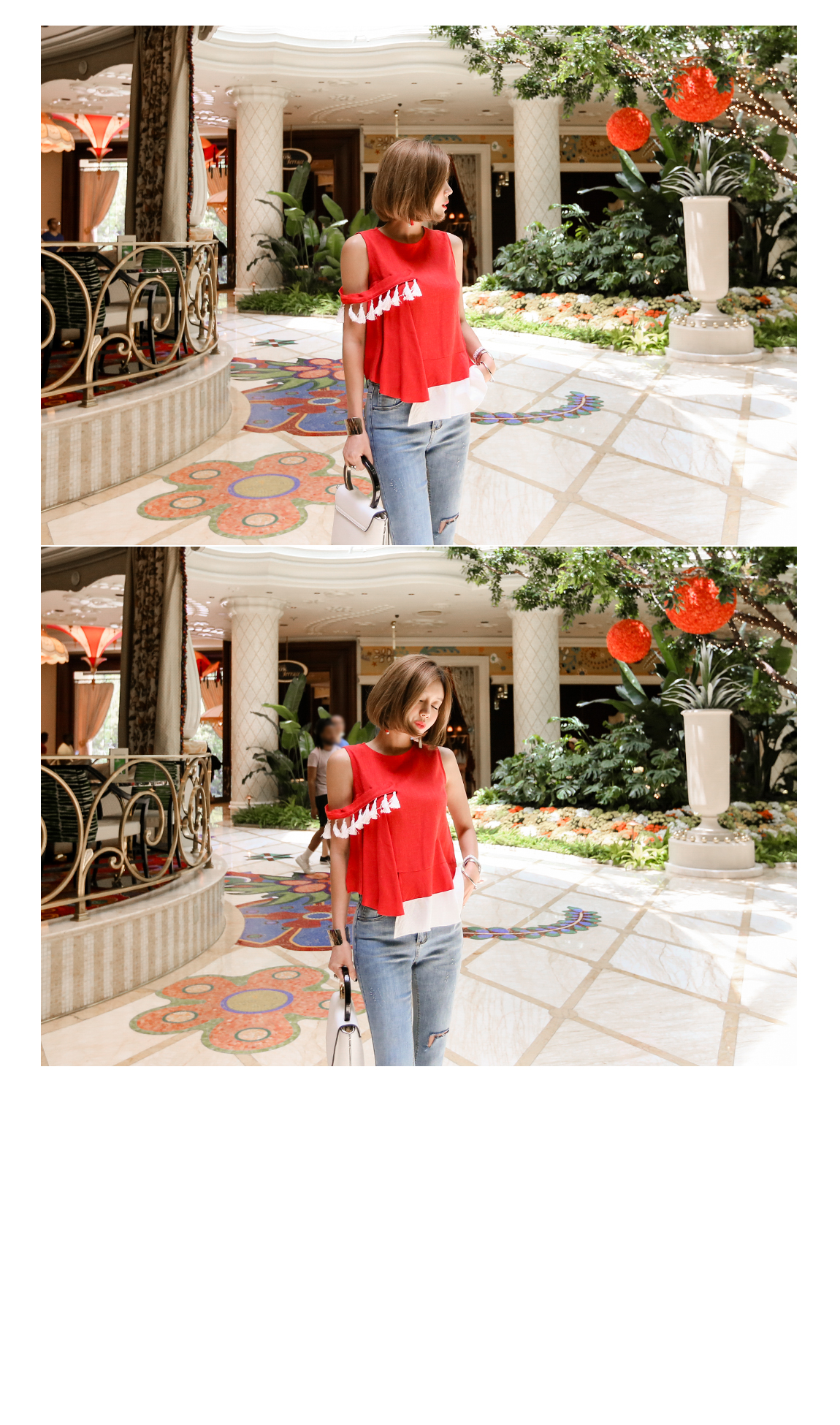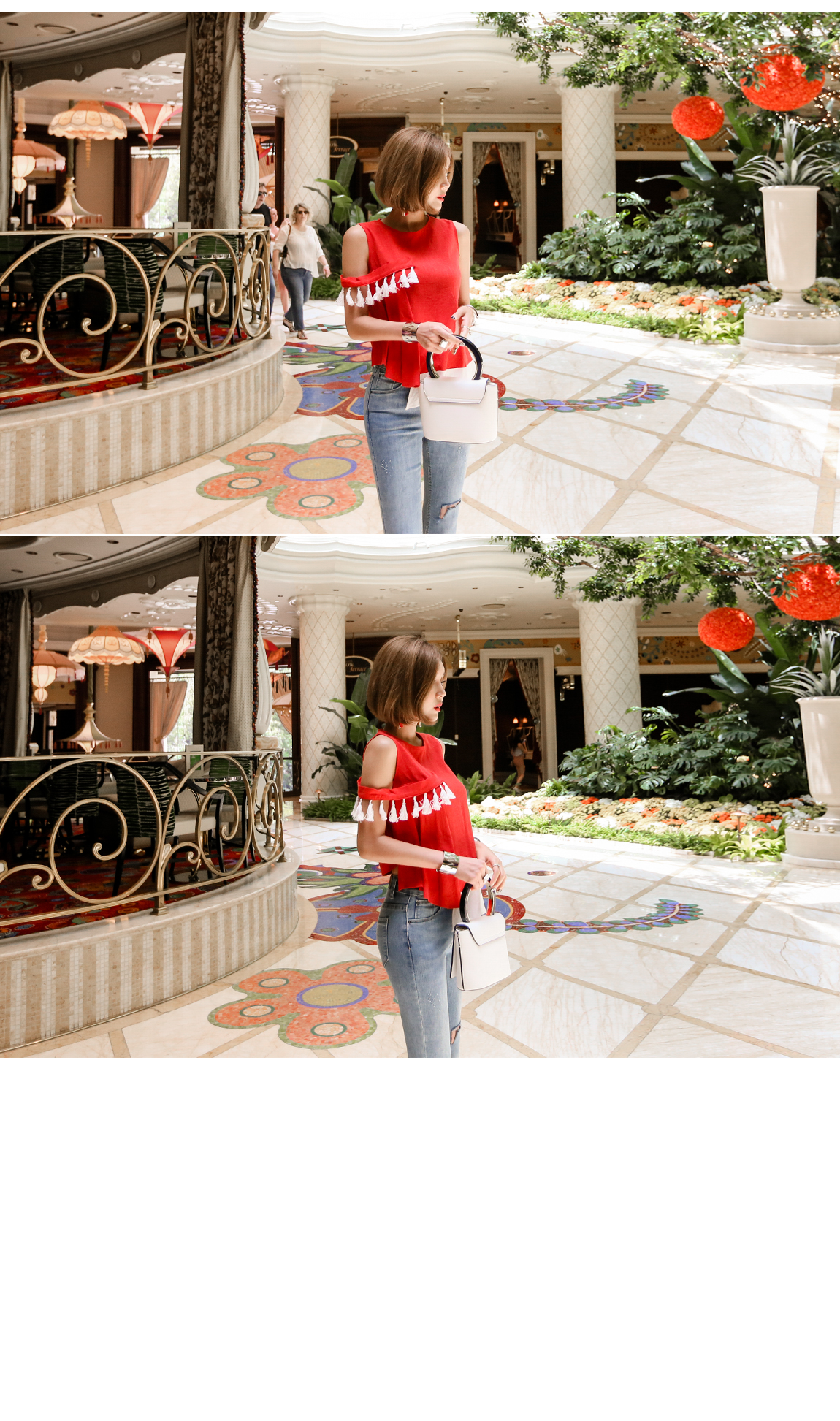언발란스한 테슬 디테일로 유니크한 포인트를 주었어요