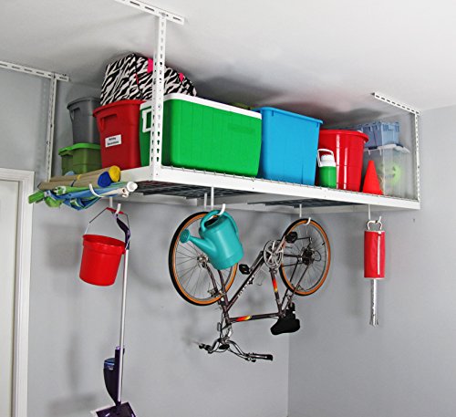 Studio : MonsterRAX Publisher : MonsterRAX Binding : Misc. Product Description Monsterrax 4' x 8' overhead garage storage rack is designed to help utilize wasted space in your garage. Our patented design holds 600 pounds and we back it up with a lifetime warranty. Customize the Ceiling drop-down distance between 24" and 45" from the Ceiling. If you need a longer distance from the Ceiling, check out our related products. We use industrial quality steel and complete our product with a powder coat finish. Easy step-by-step instructions with a full-time support staff for all your questions. Finally, fit the car back in your garage or utilize some new found space! monsterrax!...it's your garage, take it back! ***industry Warning*** 600 pounds is the maximum your garage Ceiling can withstand. Monsterrax is engineered at well over 1,500 pound breaking strength. When shopping for your racks, do not confuse breaking strength with rack capacity. Never load any company's rack to more than 600 pounds or you risk serious damage to your home, life and personal property.Hardware provided is for installation into wood joists only*** 0