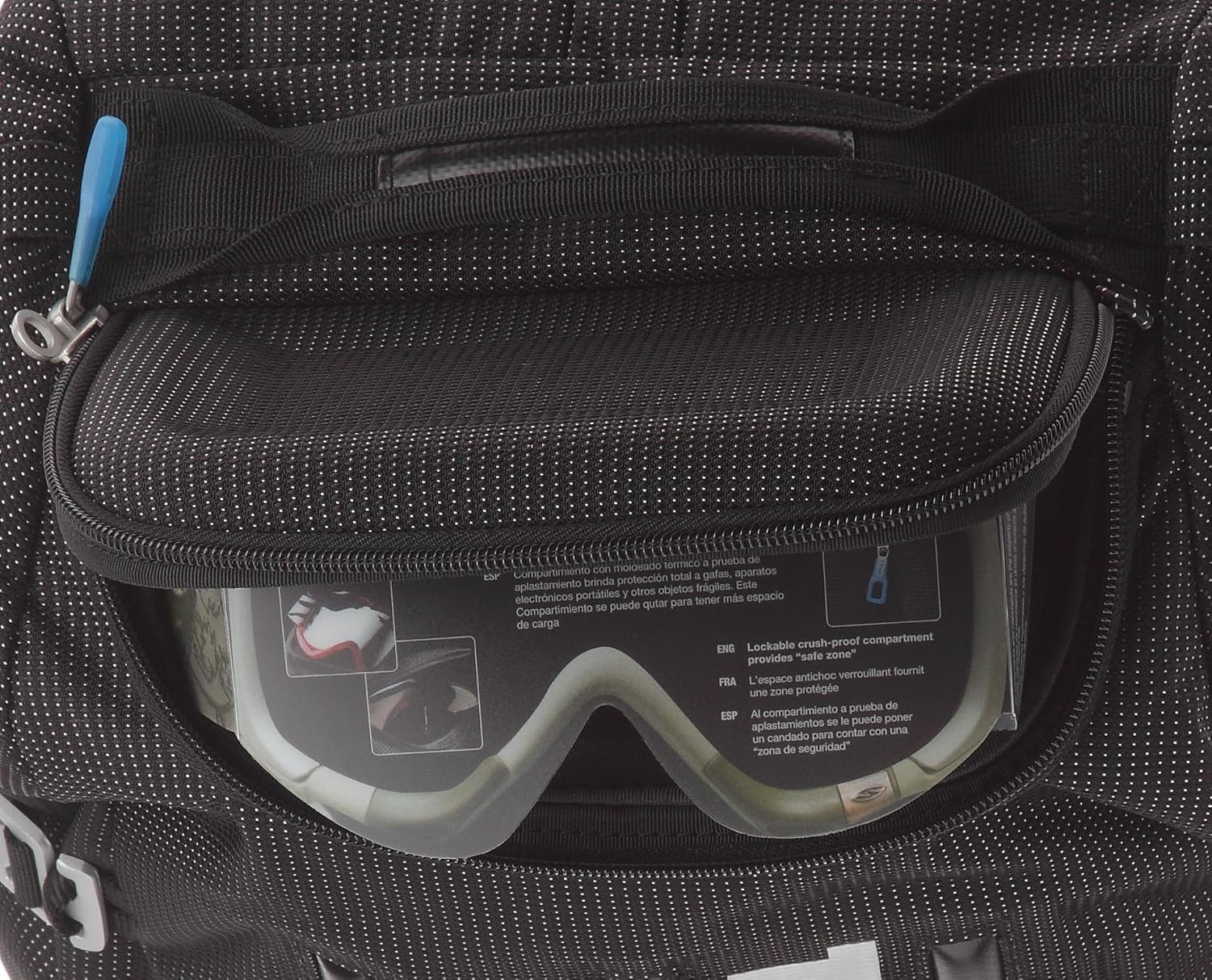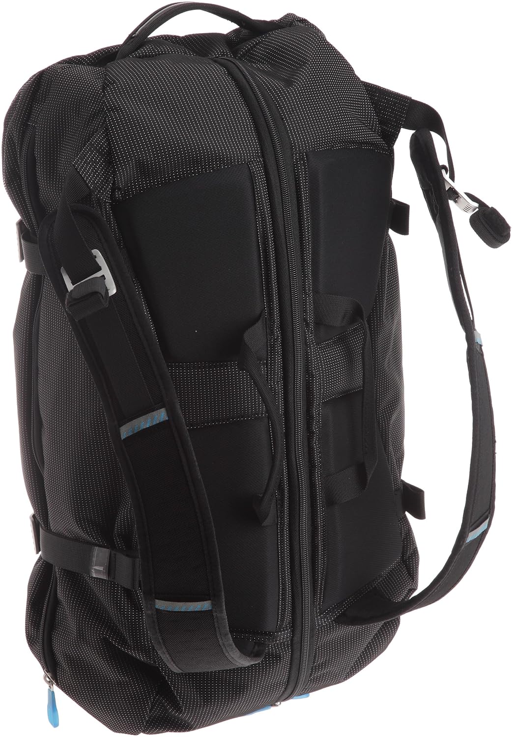 Fabric/Nylon 40-liter ultra-durable duffel bag with backpack straps and duffel handles Water-resistant fabrics and aluminum hardware for a lightweight, durable bag Crush-proof SafeZone compartment protects eyewear, portable electronics, and more Large gusseted side pockets separate clean-from-dirty, wet-from-dry Measures 13.4 x 23 x 9.4 inches; 25-year warranty