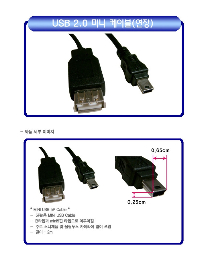 5-pin MINI USB2.0 extension cable 2M dicarboxylic