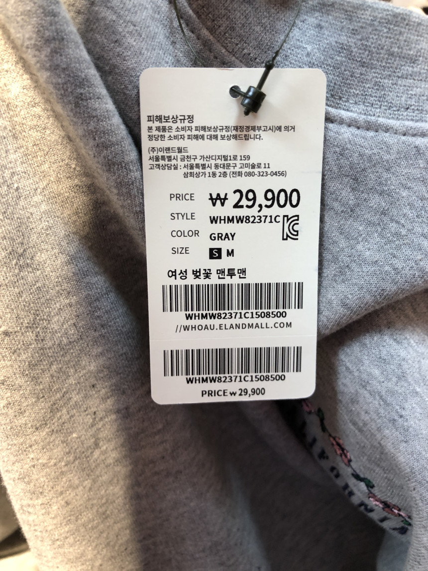 착용시 왼쪽 팔부분에는 벚꽃 프린트가 들어가