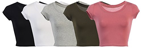 This Juniors Basic Cap Sleeve Round Neck Short Crop Top Shirts Featuring 95% Rayon and 5% Spandex, it provides a comfy fits.