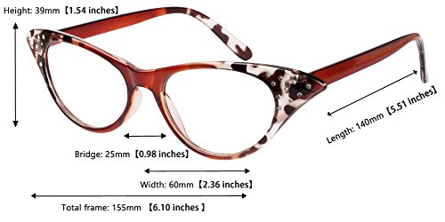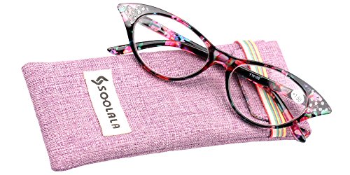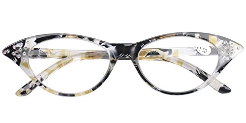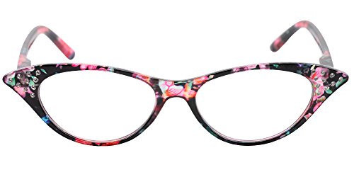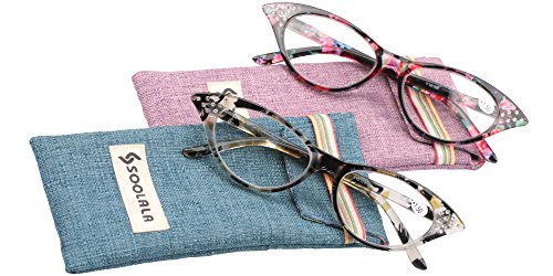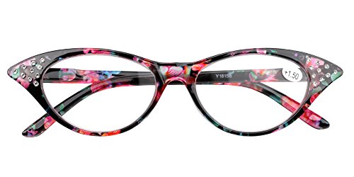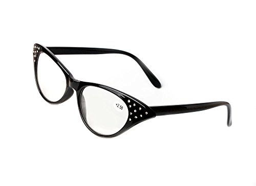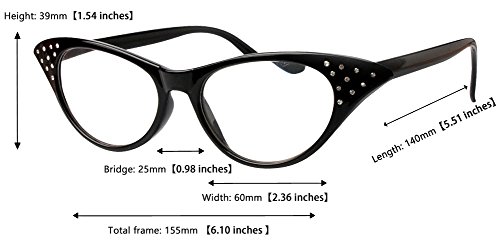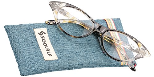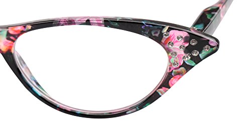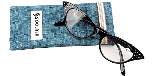 | SOOLALA Womens Fashion Designer Rhinestone Cat Eye Magnifying Reading Glasses |