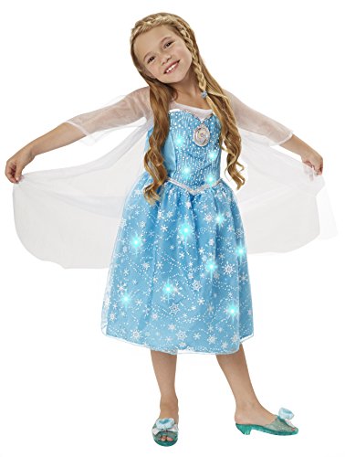 This beautiful Elsa dress features magical motion-activated lights and music!