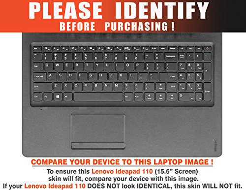 -. Feature : Made for the Lenovo IdeaPad 110 (15.6" Screen) laptop only. Device NOT included. / Please refer to the "Identify" image on this listing to ensure this skin will fit your device. / Durable, high quality adhesive vinyl stickers; this product is NOT A HARD COVER or made of rubber, silicone, gel, or plastic. / Image colors may vary depending on your monitor settings. / Easy to apply without any liquids / solution. To remove, simply peel it off slowly with your bare hands, leaving behind no sticky residue!