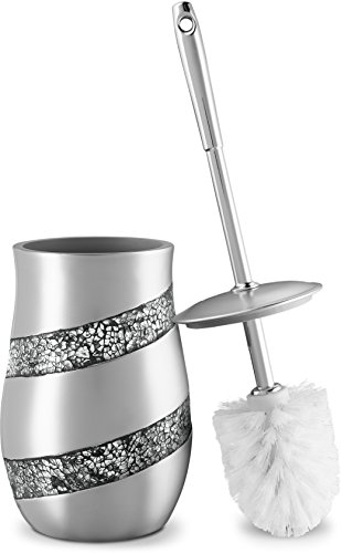 Dwellza Silver Mosaic Toilet Bowl Brush with Holder (4.5” x 4.5” x 7.7)” - Rust Resistant Resin- Decorative bowl Scrubber- Space Saving Design- Contemporary Scrubbing Cleaner (Silver Gray)