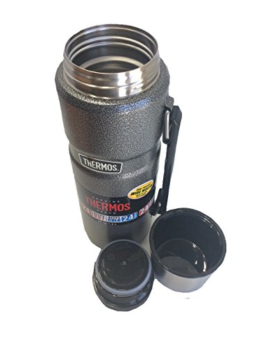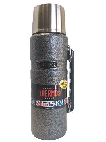 Thermos Stainless King Insulated Vacuum Bottle Stainless King Beverage bottle. Patented Thermos vacuum insulation technology for maximum temperature retention, hot or cold. Durable stainless steel interior and exterior. Twist and pour stopper to pour without removing stopper. Cool to the touch with hot liquids, sweat-proof with cold. Insulated stainless steel serving cup. 3 1/2"W x 12.1 In. H. x 3.7 In. D. Capacity: 40 oz/1.2LFeature