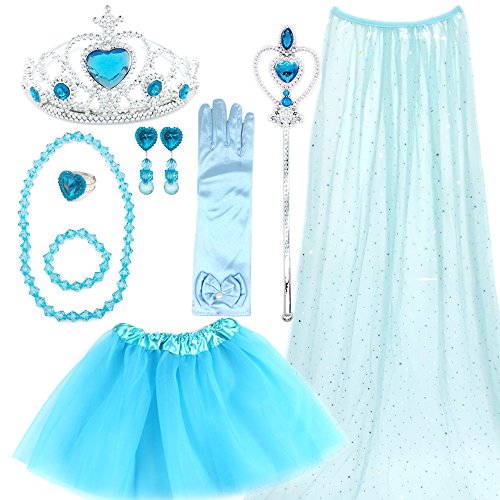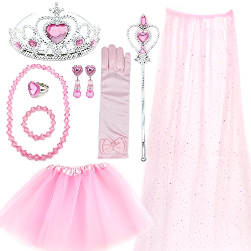 Package include 1 cape,1 tutu skirt,1 tiara,1 wand,1 gloves,1 necklace,1 bracelet,1 ring,and 1 pair clip on earrings
