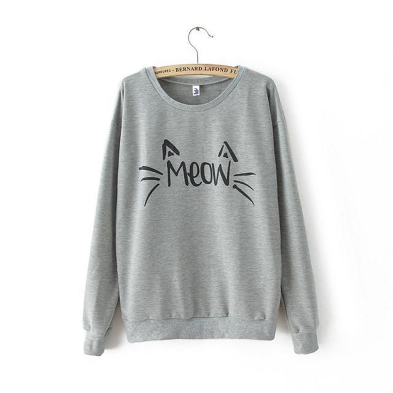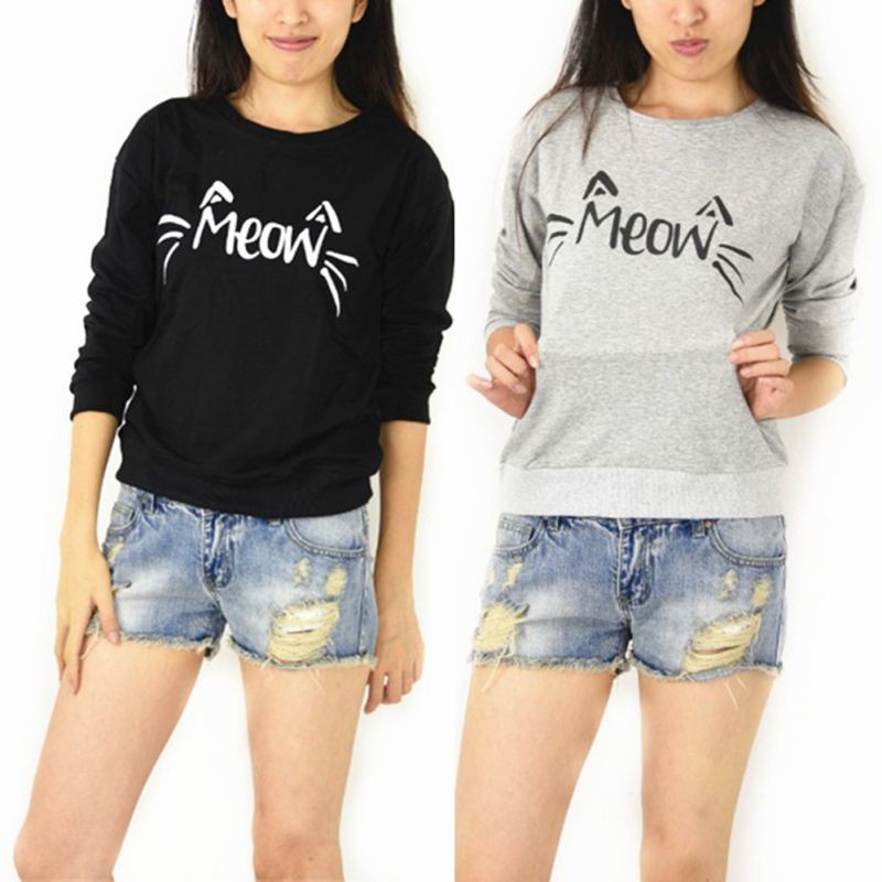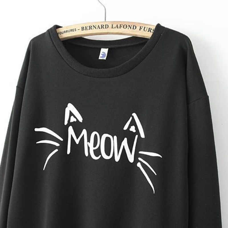 Fashion Women Casual long Sleeve MEOW Print Tops Sweatshirt
