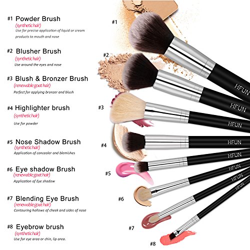 HFUN Professional Makeup Brushes Set 8 Pcs Synthetic Cosmetic Make up Brush Tool for Foundation Blush Concealer Powder Bronzer Highlight Eyeliner Eyebrow...