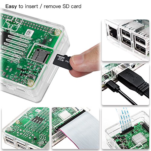 Feature Clear Case: All the access ports are accessible, SD card can remove easliy when the RPi install in the case. And the top panel is designed for easy access to the GPIO pins and easy to plug and remove anything so that you can easily to connect it.