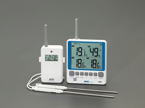-. Feature : セット内容:親機1台、子機:(EA742MG-12A×1台) / 測定範囲:(本体)温度:-20℃/70℃、湿度:5/99%RH、(温度プローブセンサー)温度:-40/70℃ / 分解能:0.1℃、1%RH / 測定精度:温度:±1℃(10/39.9℃)、±2℃(0/9.9℃、40/50℃)、湿度:±5%RH(30/69%RH)、±10%RH(それ以外の範囲) / 外部センサー設置距離範囲:最大100m / 電源:本体:単3乾電池×4本(付属)、子機:単3乾電池×2本(付属) / サイズ:本体:120(W)×30(D)×134(H)mm、子機:66(W)×31(D)×112(H)mm / 重量:本体:約325g(電池含む)、子機:約247g(電池、プローブ2本含む) / 付属品:子機1台、取扱説明書、単3乾電池×4本