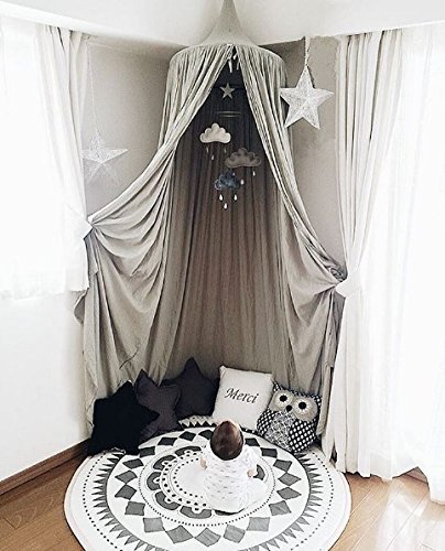 Studio : Fangsi Publisher : Fangsi Binding : Baby Product Product Description Condition: 100% Brand New Material: Cotton Color: Gray, pink Height: 94.49 in Package Weight: 0.76kg Perimeter circumference: 59.84 in. Circumference circumference: 104.33 in. Our Kids Bed Canopy is made of soft cotton material, environmentally friendly and comfortable, there is no fade after wash, safe to use for baby. It is perfect for hanging over sky bed, crib, hammock or room corners in the children's room because it can create a safe, soothing and cozy feel for it. Put in a piece of playpad and baby pillow toys, they could play with their little friends in it. It is also very easy to install with included steel rings, hooks and screws. Childrens Room Decoration - Perfect for a little girl or boy room or bedroom makeover, with hanging ring in the middle, flanking the floor, it can be an ideal playground for kids in combination with a round quilting mat, nice and functional. 0