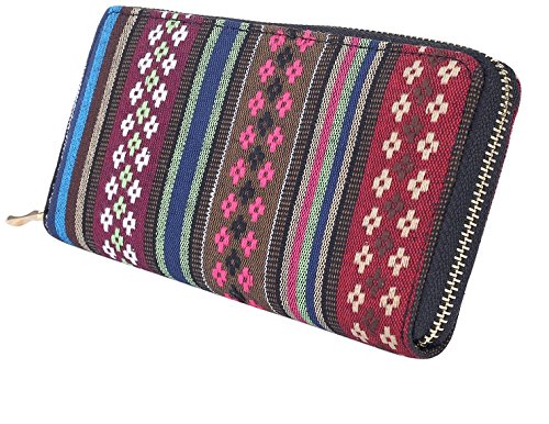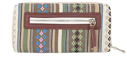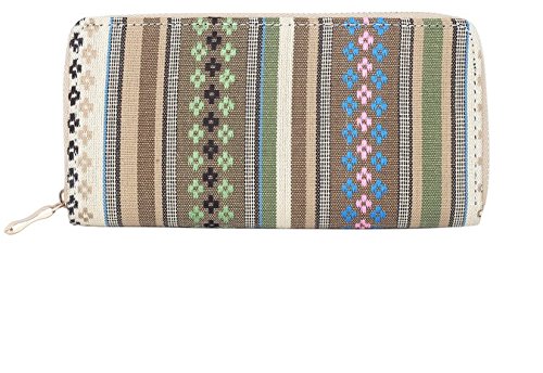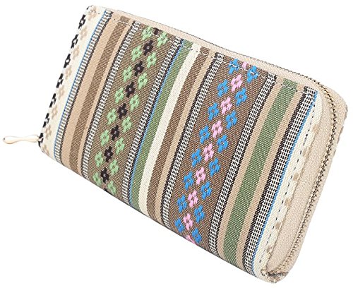 Anleowatch 1PCS Strip National Style Women Wallet Bohemian Purse Card Holder Handbag (Khaki)