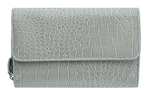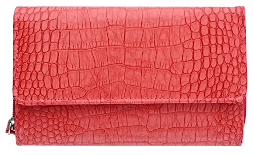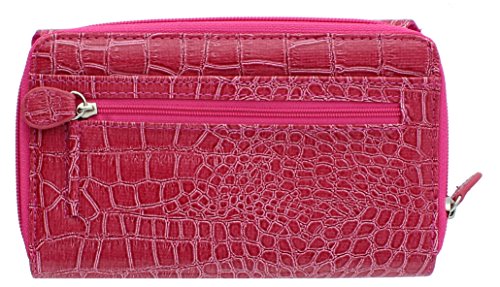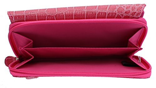 Mundi 333475/D178 Womens Croc Faux Patent Leather Big Fat Wallet (SHINY CROCO FUCHSIA)