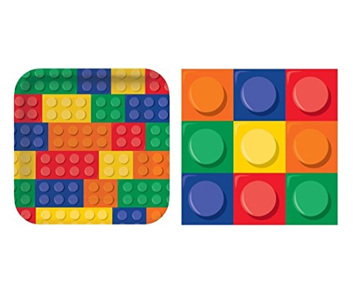 -. Feature : Building Blocks Party Pack - Dinner Plates and Napkins (16 Guests) / 16 Dinner Napkins 6.5 Inches Square / 16 Paper Dinner Plates 9.5 Inches Square / Perfect for children parties! / Great for L.E.G.O theme party!