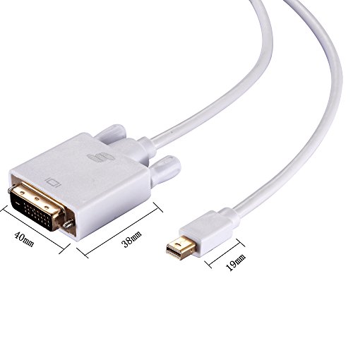 Sinseader Gold Plated 6Ft Mini DisplayPort to DVI Adapter Cable for Apple MacBook MacBook Air MacBook Pro Mac Mini Microsoft Surface Pro/Pro 2/Pro 3&Surface 3 Google Chrome book Pixel (MDPDM01)