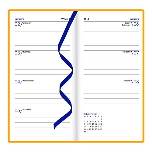 -. Feature : Week to view planner with ruled space for each day of the week / Calendar for current month on each spread / Embossed cover / Ribbon bookmark / Perfect binding with flexible cover