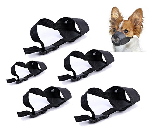 Dog Muzzle, 1 Set of 5 PCS Anti Barking Biting Nylon Adjustable Muzzles for Small, Medium, Large and Extra Large Dogs