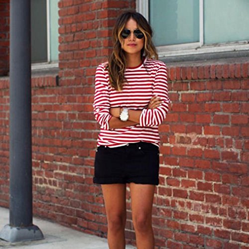 -. Title : Gillberry Womens Casual Long Sleeve Round Neck Stripe Shirt Blouse Tops T Shirt