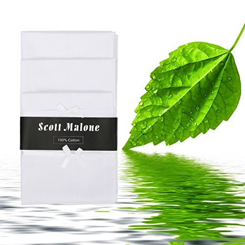 Product Description Scott Malone Men's Handkerchiefs meet in this 12 pack of white handkerchiefs that feature a solid design. They are made of 100% woven cotton. Strap band with poly packaging. Whether Its a Classy pocket square or the old school Cleaning Handkerchief you're looking for, these scott malone Handkerchiefs do it all. These Clean looking Solid Whites are the perfect purchase. 0