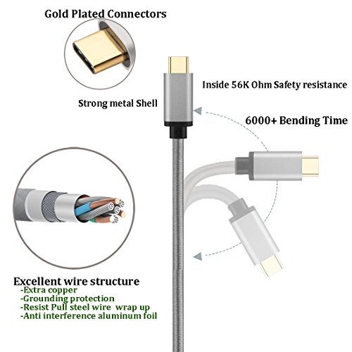 Type C Charger,X-EDITION USB C to USB A Cable [3ft+6ft+10ft, Pack-3] Gold Plated with 56k Resistor Braided Hi-Speed Charging for Google Pixel XL,Nexus 5X/6P,LG G6 G5,Samsung Galaxy S8+/ S8 Plus (Gray)