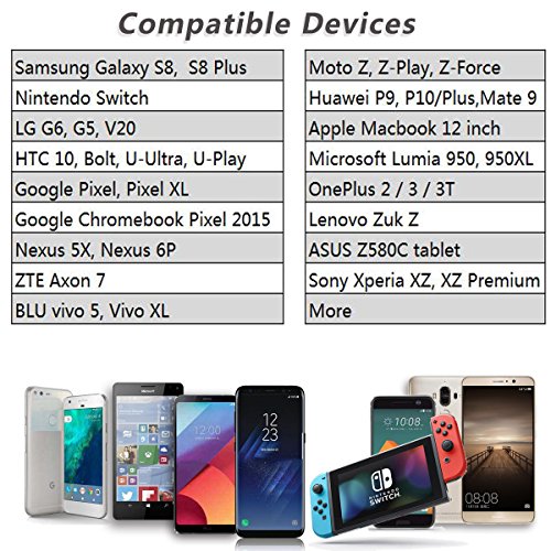 USB Type-C to USB-A 2.0 Charging Cable, Compatible with Samsung Galaxy S8 /S8 Plus/S8+, Google Pixel/XL, Nexus 5X/6P, Nintendo Switch, LG G5 G6 V20, HTC 10 Bolt U-Ultra, Oneplus 2/3/3T, Nokia N1 Tablet, Lumia 950 / 950XL, Huawei P9 P10 Plus Mate 9, BLU Vivo 5 / Vivo XL, and More USB-C support devices.