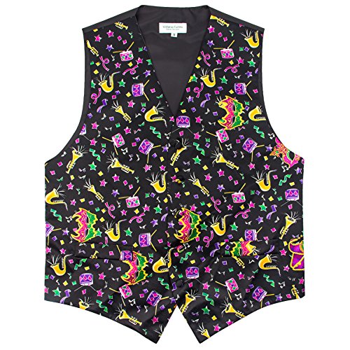 Product DescriptionMardi Gras Style, Vibrant Colorful Celebration Print Vest Bow Tie ONLY0
