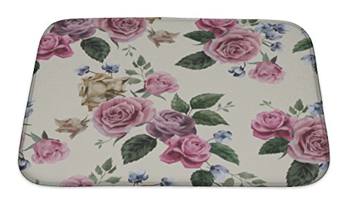 Gear New Floral Pattern with Pink Roses Bath Rug Mat No Slip Microfiber Memory Foam