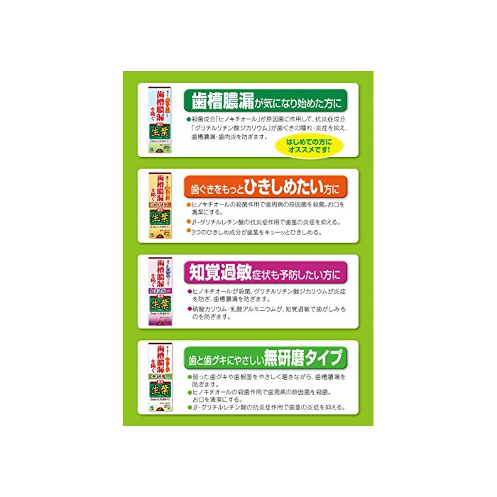 원본상품명: 生葉(しょうよう) 知?過敏症?予防タイプ ?槽膿漏を防ぐ ?用ハミガキ ハ?ブミント味 100g