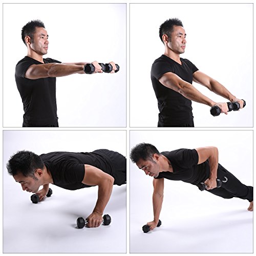 Description: Wanna tone your perfect body at home? Start with our dumbbells now! Made of solid metal and black rubber, our dumbbells are resistant to deformation and wear. The 8-sided plates on our dumbbells allow them to stand steadily on the floor without tipping. Our dumbbells are perfect for you to meet your fitness goals in the comfort of your own home!