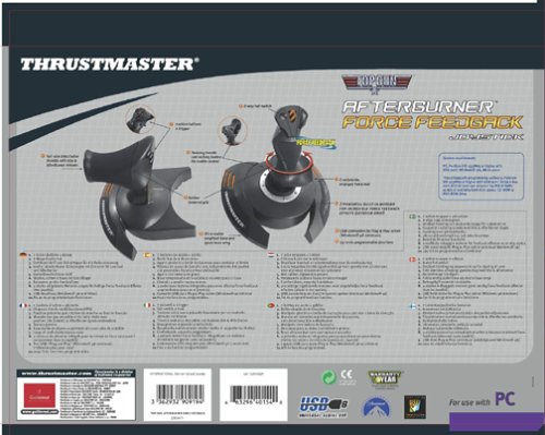 -. Binding : Personal Computers -. Brand : ThrustMaster -. EAN : 0663296402707 -. Feature : Got a thing for combat FlightSims? So do we! Give in to real throttle jerking, stick shifting, missile launching fun. The Top Gun¿ AfterBurner¿ joystick gives you everything you need to come out victorious in even the worst of dogfights. / The Top Gun AfterBurner Force Feedback joystick is the first joystick combining a full size detachable throttle with Idle and Afterburner settings. / The Top Gun AfterBurner Force Feedback joystick also features 8 programmable buttons, an 8-way hat switch with point-of-view capabilities and an original design. / Now you can feel the blast from missile launches, rattle through rough crash landings and get a healthy dose of shell-shock from head-on collisions. - PC / Twisting handle and rocking button on the throttle -. HardwarePlatform : pc -. Label : Thrustmaster -. Manufacturer : Thrustmaster -. Model : 2969050 -. MPN : 2969050 -. PackageQuantity : 1 -. PartNumber : 2969050 -. ProductGroup : CE -. ProductTypeName : COMPUTER -. Publisher : Thrustmaster -. SKU : DH2969050 -. Studio : Thrustmaster -. Title : Thrustmaster Top Gun Afterburner FFB Joystick (2969050) -. UPC : 663296402707