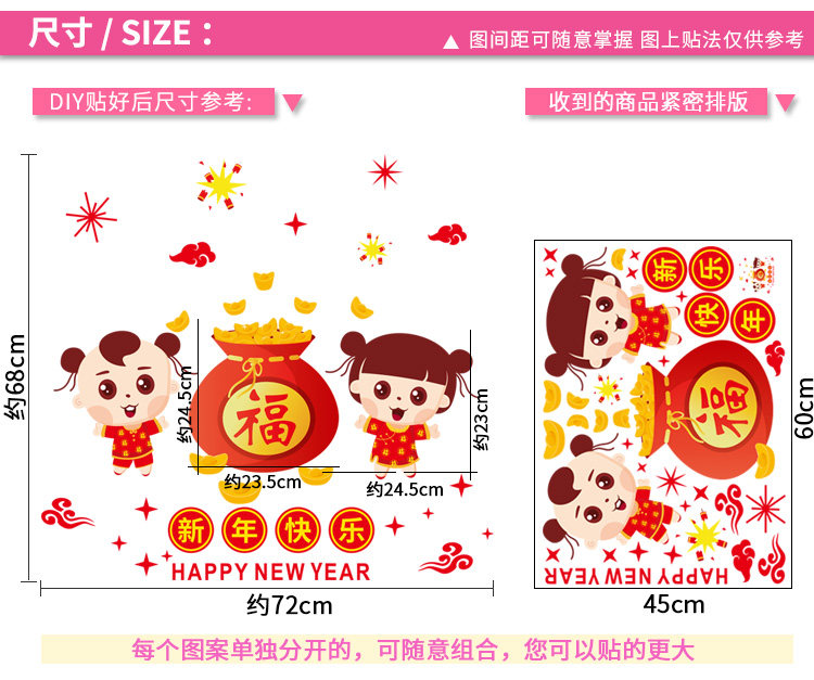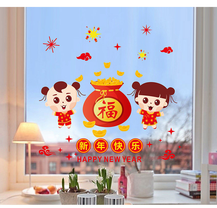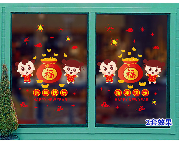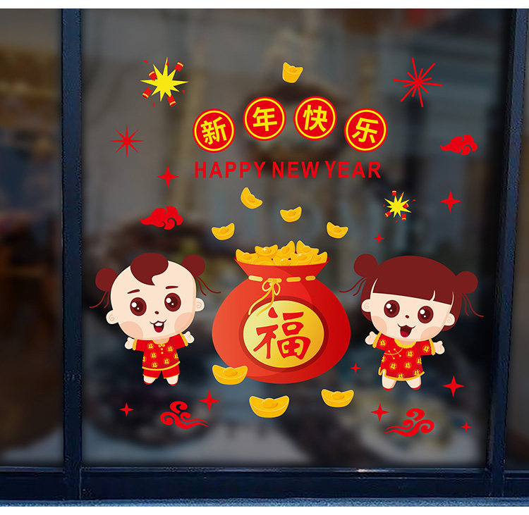 店铺橱窗贴春节布置新年氛围装饰品过年窗花玻璃贴纸福字娃娃墙贴