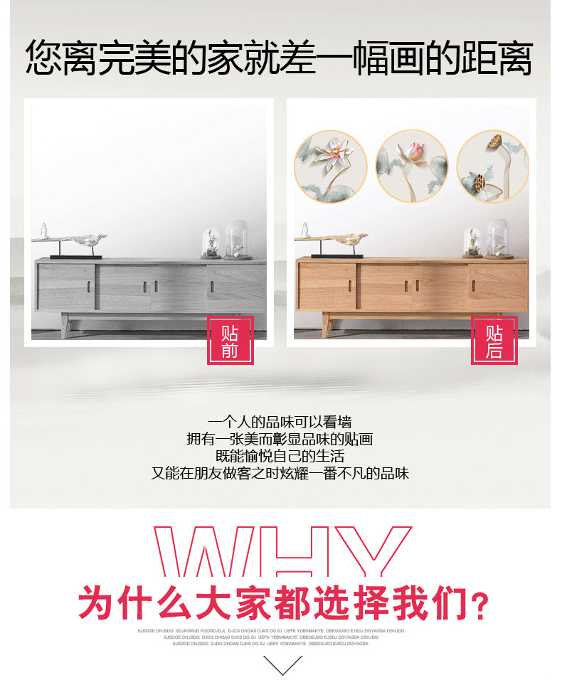 中国风荷花墙画贴纸背景墙壁装饰自粘墙纸贴画客厅卧室温馨墙贴