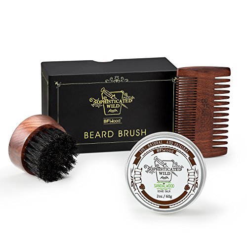 BFWood Beard Kit for Men – Small Travel Beard Brush Boar Bristle + Solid Ebony Wood Beard Comb + Beard Balm 60g Sandalwood Scent