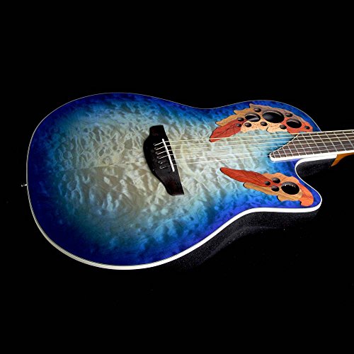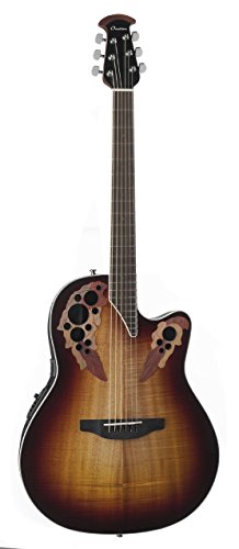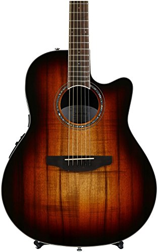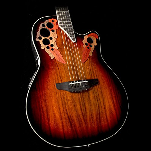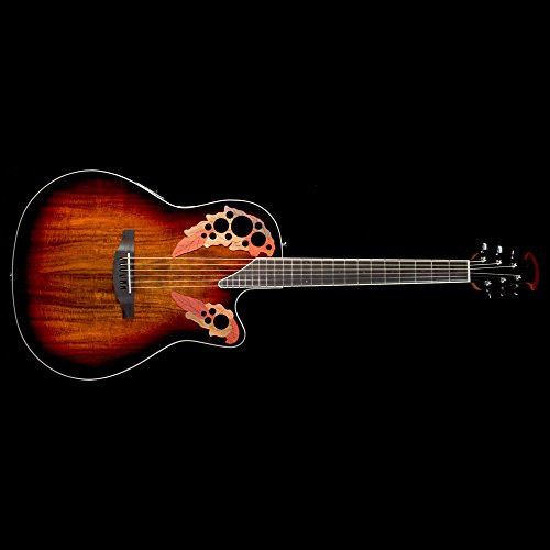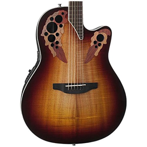 Studio : Ovation Guitars Publisher : Ovation Guitars Binding : Electronics Product Description The Celebrity Elite Plus series builds on the classic multi-sound hole instrument design of the Celebrity Elite guitars, upgrading them with select figured tops, beautiful abalone appointments and first-rate sound, style and features. The Celebrity Elite Plus CE48P-KOA guitar has the classic Super Shallow Lyrachord cutaway body with a Figured Koa Top. This top features the Elite multi-soundhole design, which provides clear highs, focused, and balanced bass response. For the top’s quartersawn scalloped “X” bracing, we reviewed earlier Ovation bracing patterns extensively and arrived at a remarkable new design that borrows from the past and is voiced for the present. With natural tone and optimal response and power, the body, top and sound holes create the classic Ovation Elite sound, resonating with full projection, remarkable note clarity and balance, and nuanced tonal complexity. The top is complete with white binding and a beautiful transparent Sunburst finish. Other premium features include an effortlessly playable satin-finish neck, 10”-radius rosewood fret board with 20 fully accessible frets (24 frets for high E string), Pearloid inlays, and a rosewood bridge. The CE48P-KOA features an Ovation Slimline pickup and OP-4BT preamp system with three-band EQ, volume/gain control, onboard tuner and low-battery light. 0
