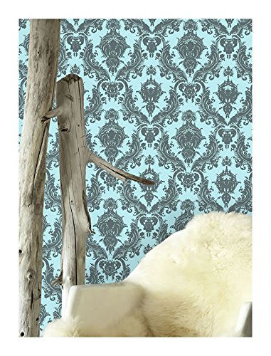Tempaper Designs DA 022 Damsel Self-Adhesive Temporary Wallpaper, Aqua and Grey