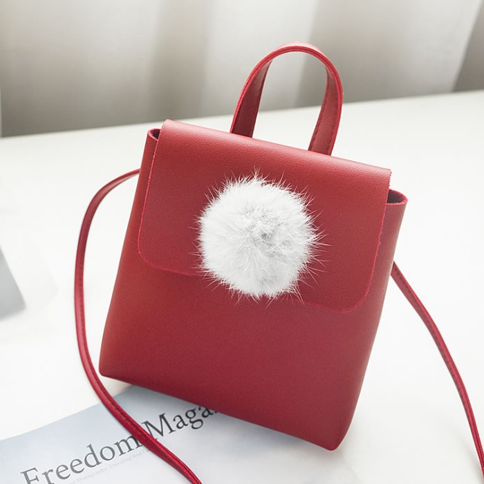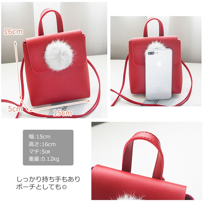 ポンポン ファー付き ミニショルダー ミニポシェット☆ポンポンが大人かわいさをレベルアップ♪