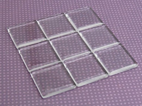 50 Pack - CleverDelights Clear Square Glass Tiles - 30mm (1 3/16") - 2 Flat Sides
